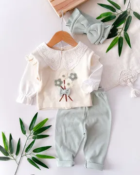 کت جین خرگوشی با یقه دانتل 🎀🐰