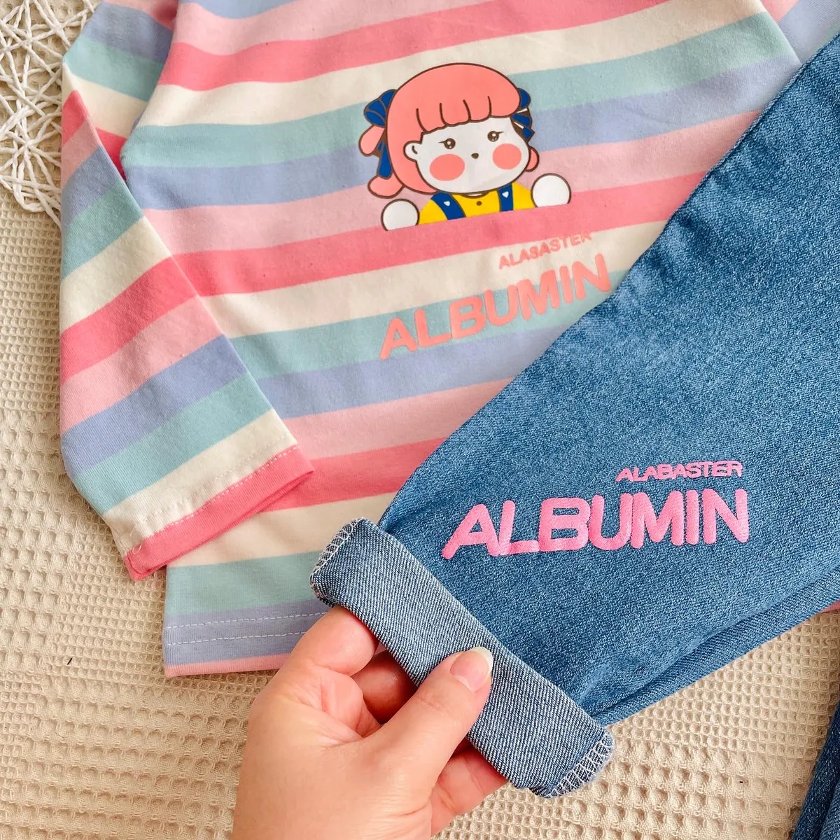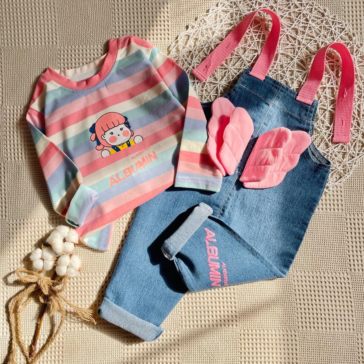 ست بیلر جین بالدار 🦋 بلوز رنگین کمانی 🌈
