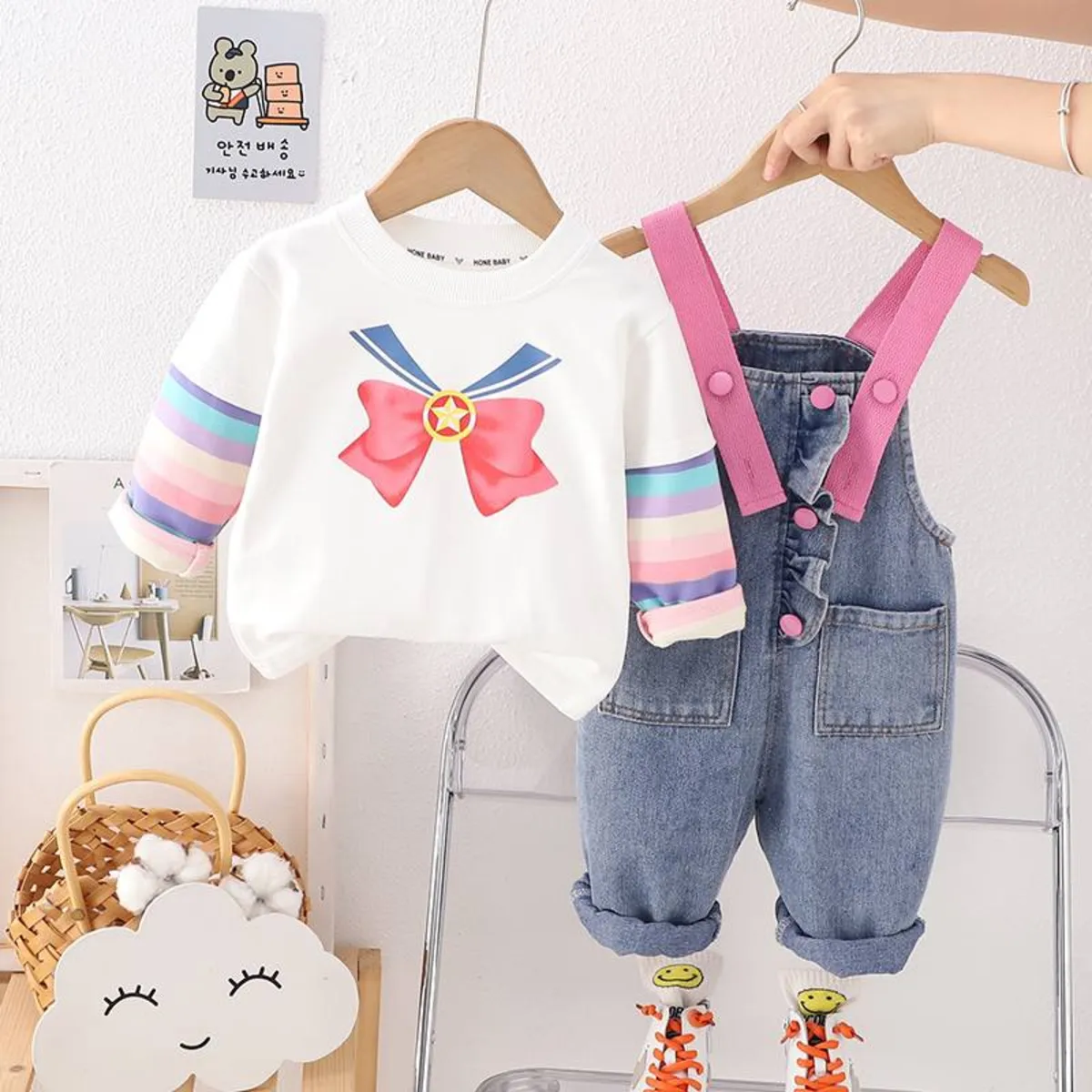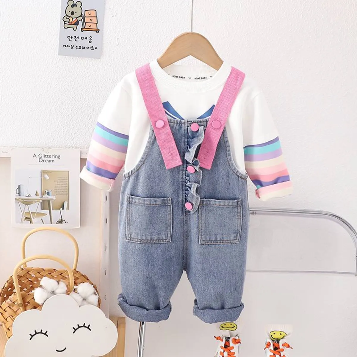ست بیلر جین بالدار و بلوز رنگین کمونی 🌈