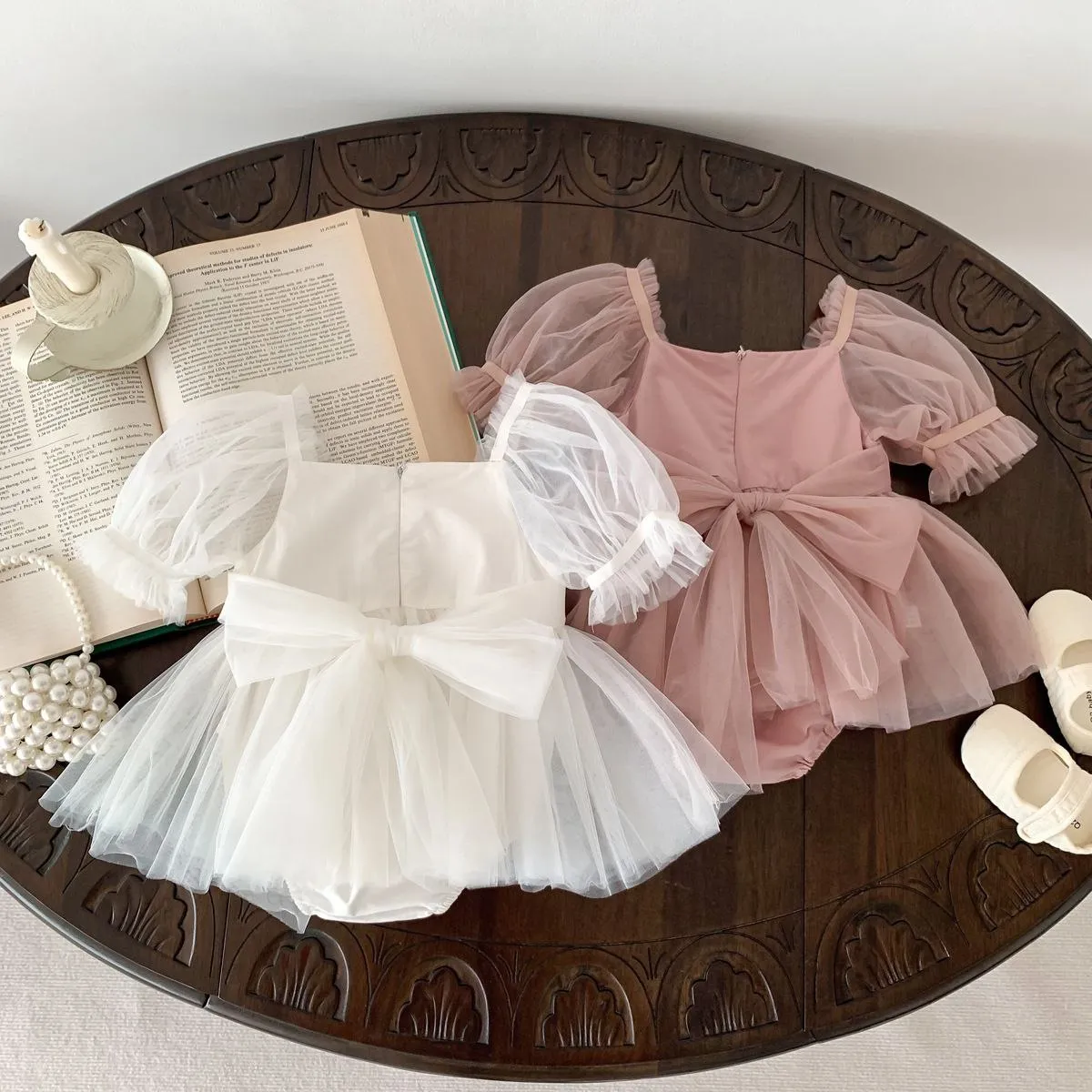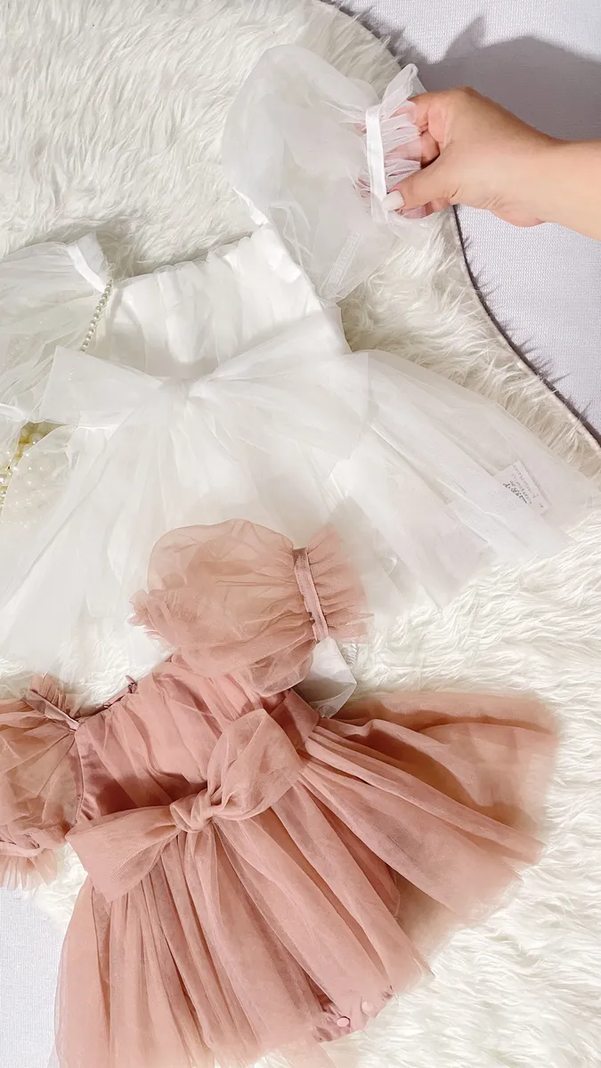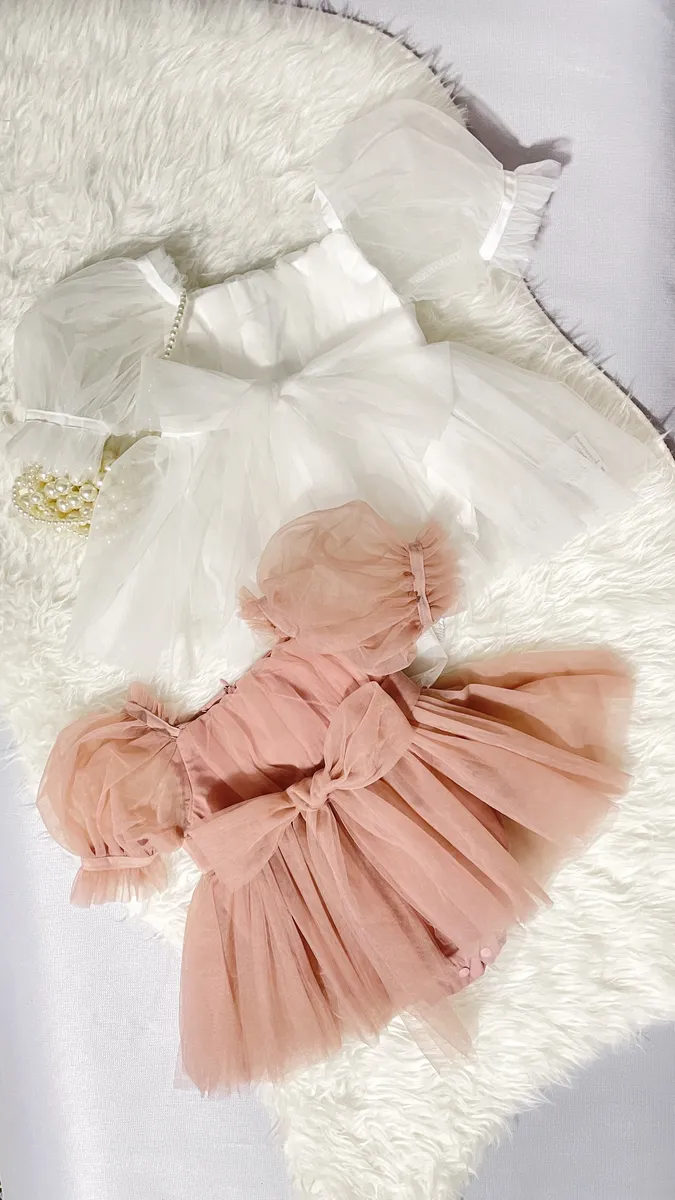 پیراهن تور دار پرنسسی با آستین های پفکی