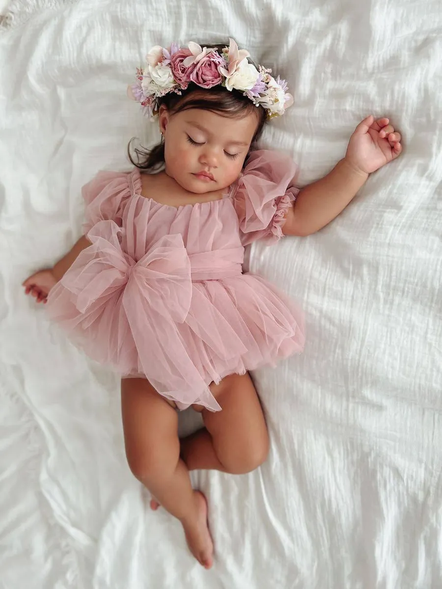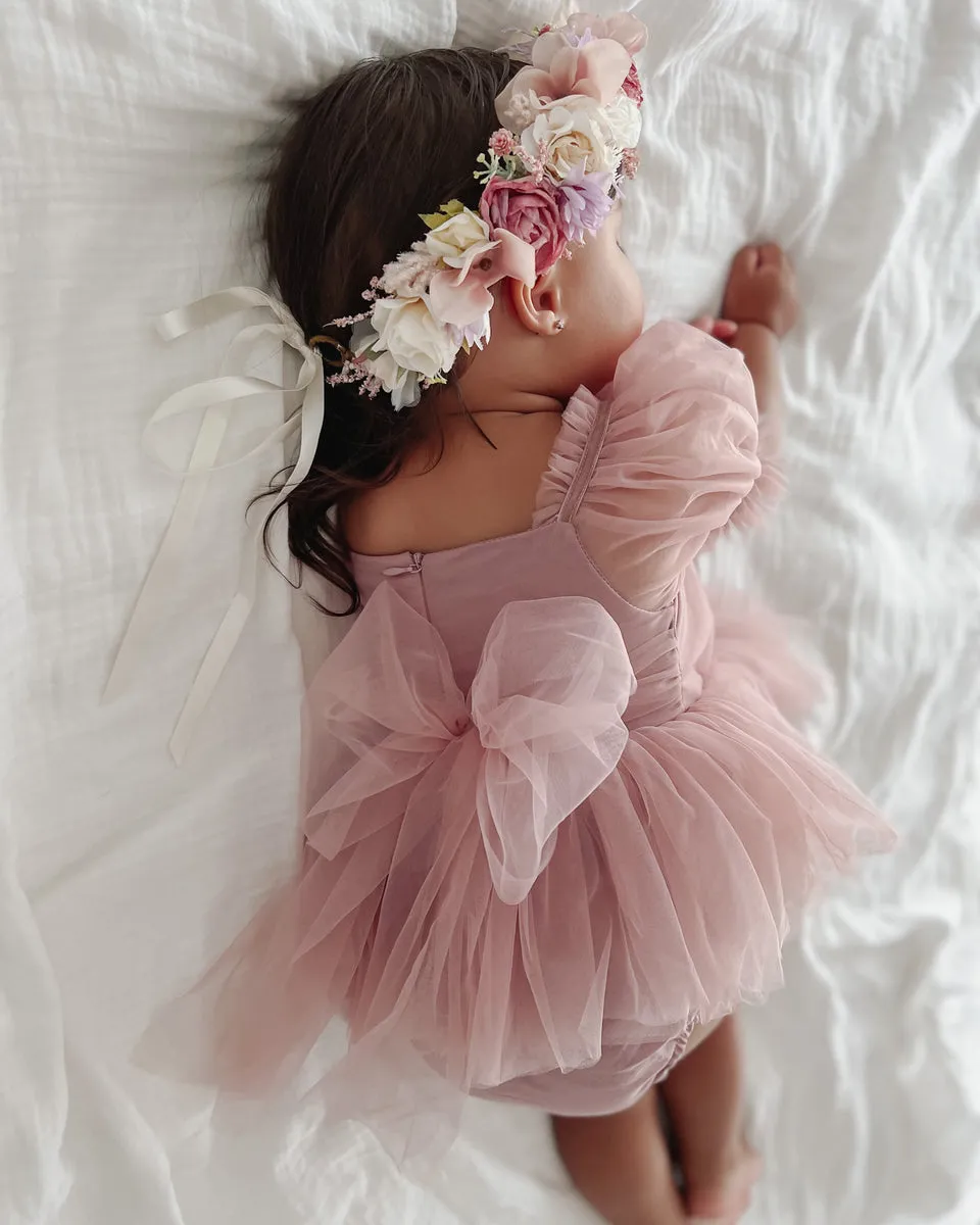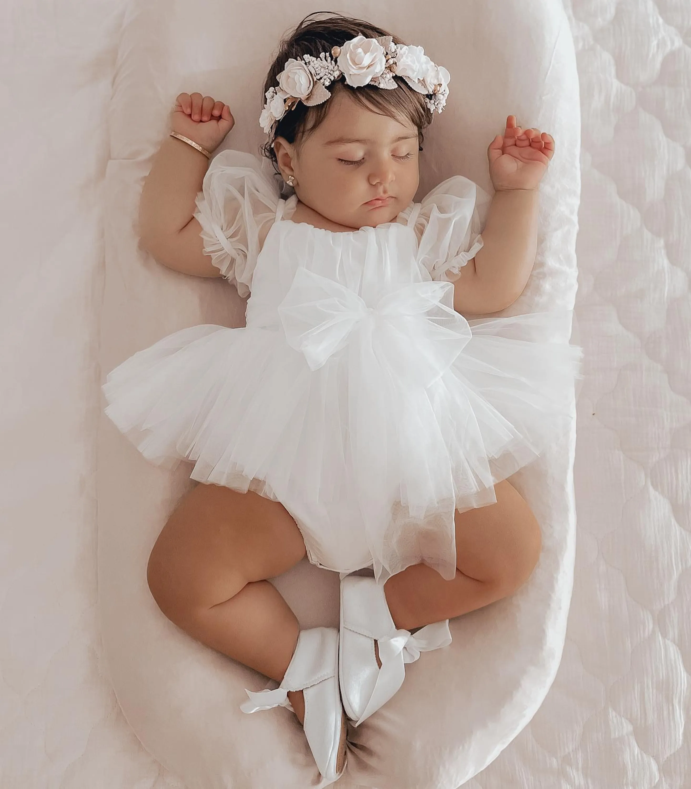 پیراهن تور دار پرنسسی با آستین های پفکی