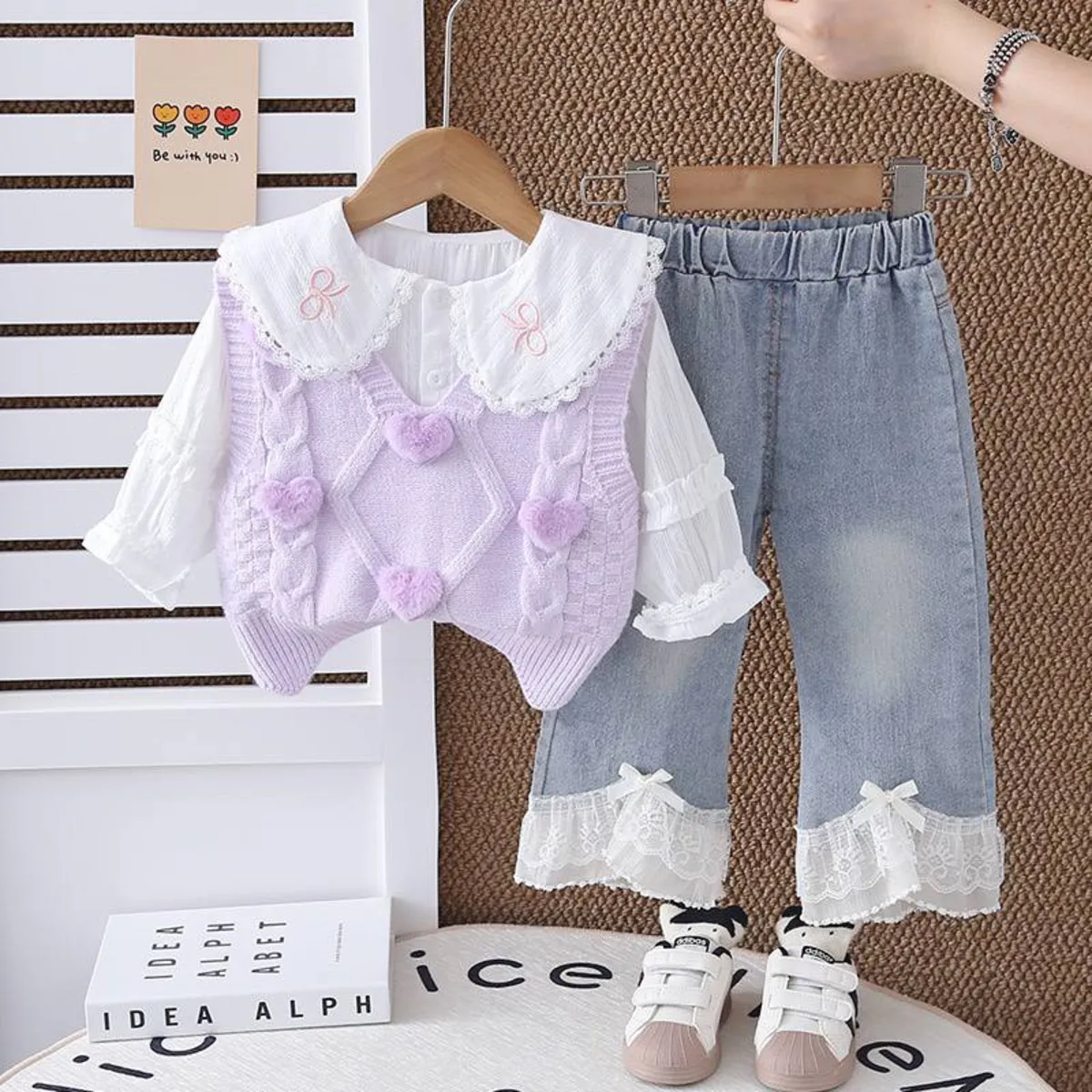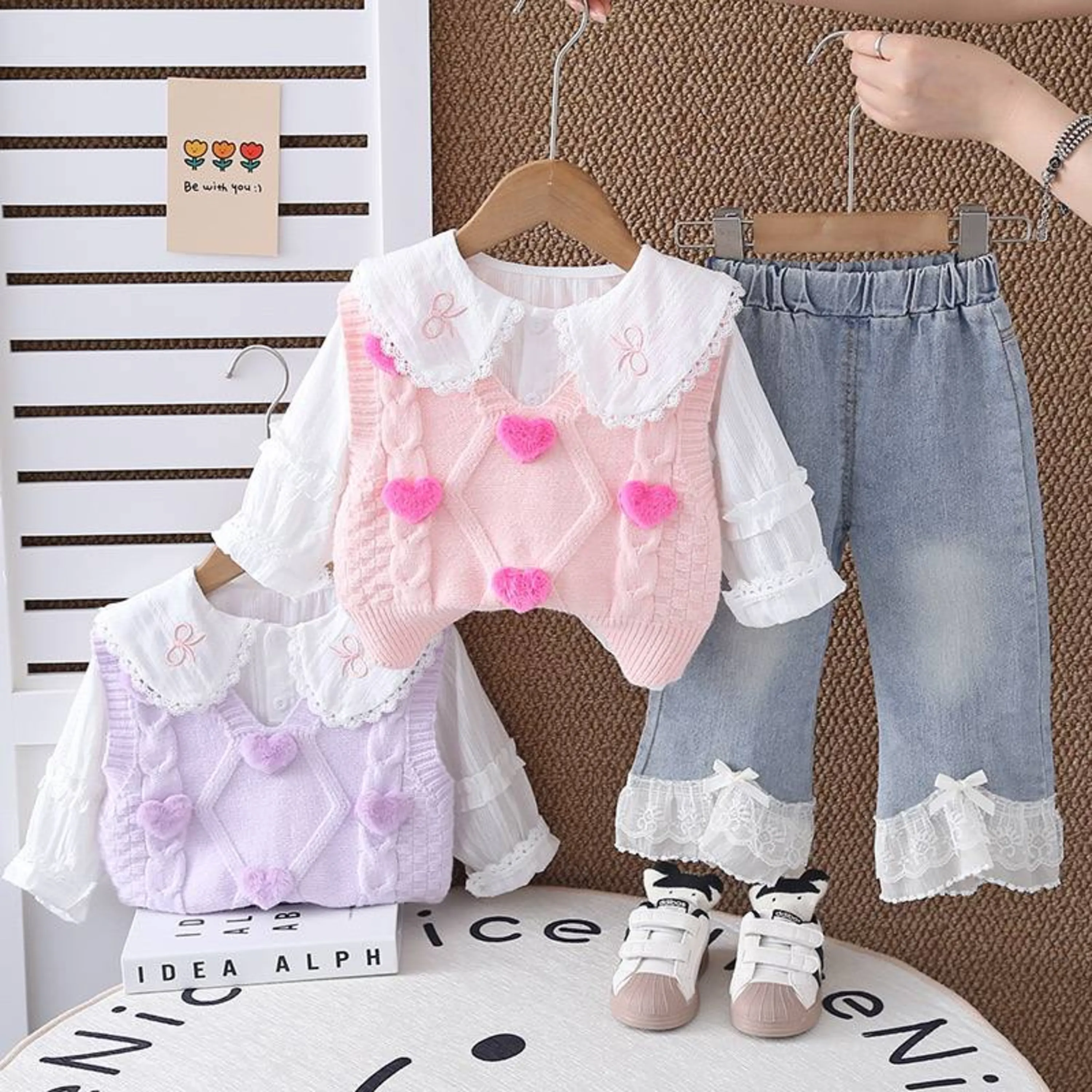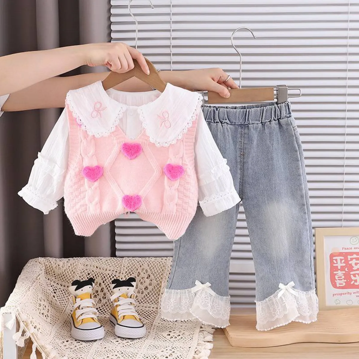 شلوار جین شومیز و ژیله بافت